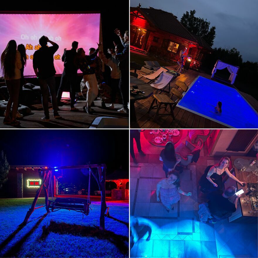 - Oświetlenie zewnętrzne i wewnętrzne (Party/Ambient)